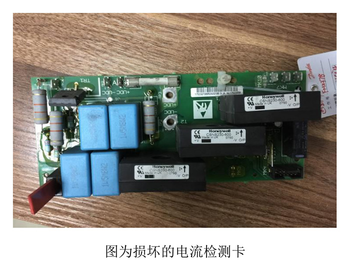 案例一:客戶反映有一臺(tái) VLT6000 75KW 的變頻器出現(xiàn)報(bào)警并跳閘,報(bào)警不能復(fù)位,變頻器不能運(yùn)行。我們到現(xiàn)場首先檢查主電路是否正常,確認(rèn)正常無誤后再上電,然后查看變頻器報(bào)警記錄,發(fā)現(xiàn)有AL14報(bào)警,屬于接地故障報(bào)警。出現(xiàn)接地故障報(bào)警一般有兩個(gè)可能,要不就是電機(jī)或者變頻器真的出現(xiàn)接地系統(tǒng)故障,要不就是變頻器電流檢測電路故障導(dǎo)致的。于是我們首先排查外部原因,查看變頻器和電機(jī)的接地線是否連接正常,用搖表給電機(jī)和變頻器打絕緣查看是否達(dá)到絕緣要求,查看電機(jī)電纜線是否過長等等。經(jīng)仔細(xì)檢查,沒發(fā)現(xiàn)外部電路出現(xiàn)異常,那就基本可以確定是本身變頻器的電流檢測電路出現(xiàn)故障了。我們把變頻器的電流檢測卡更換后,AL14報(bào)警復(fù)位消除,變頻器恢復(fù)正常運(yùn)行。