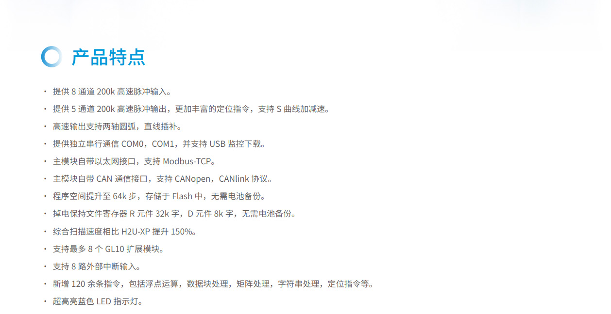 H3U系列PLC是匯川技術(shù)開發(fā)的第三代高性能小型PLC,采用新一代獨(dú)具匠心的PLC 架構(gòu)技術(shù),在增加更多豐富功能的情況下持續(xù)提升性能。配合完整且嚴(yán)格的軟件測試過程,使得PLC 穩(wěn)定可靠,值得信賴。