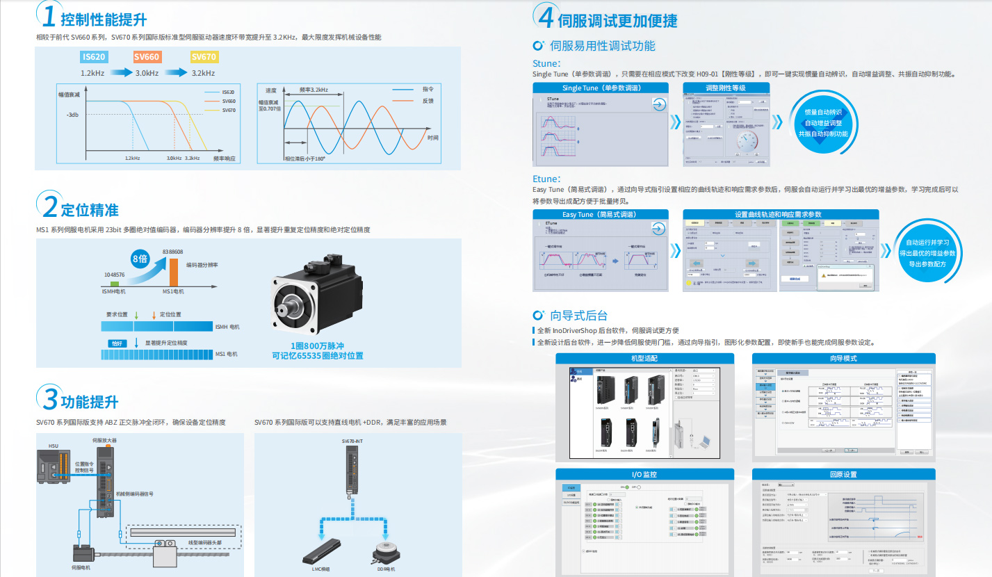 SV670 系列國際版標(biāo)準(zhǔn)型伺服驅(qū)動器適用于電子制造、鋰電、機(jī)械手、包裝、 機(jī)床等行業(yè)的自動化設(shè)備,以高性能方案實現(xiàn)快速精確的位置控制、速度控制和轉(zhuǎn)矩控制。