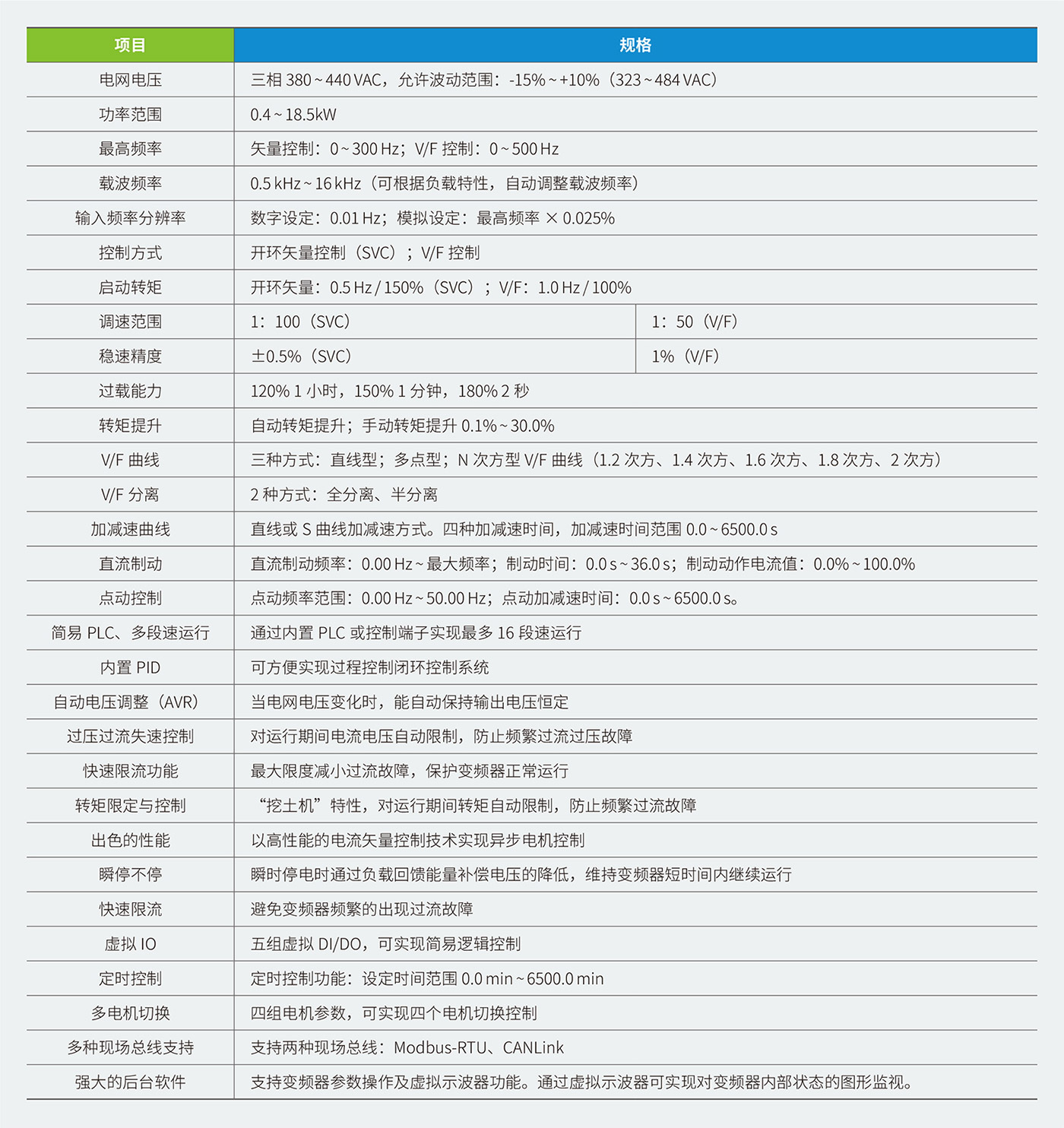 MD310系列變頻器是一款通用緊縮型多功能變頻器,采用開環(huán)矢量和V/F 控制方式,以高性能的電流矢量控制技術可實現(xiàn)異步電機控制。MD310 標配RS485 通訊接口,支持Modbus RTU 通訊,可擴展I/O 擴展卡、CAN 通信擴展卡。內置PID 可方便實現(xiàn)閉環(huán)過程控制系統(tǒng),最多可實現(xiàn)16 段速運行。